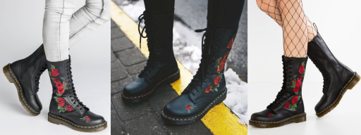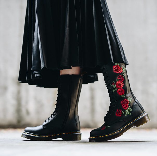 - Las 1460 fueron las primeras botas Dr. Martens: siendo ésta fiel a la original, toma prestado el estilo de la 1914 Vonda de 14 ojalillos, con rosas bordadas que fluyen por todo el lateral de la bota.